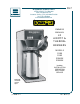 TABLE OF CONTENTS WARRANTY STATEMENT SPECIFICATIONS FEATURES & OPERATING CONTROLS PRECAUTIONS & GENERAL INFORMATION INSTALLATION INSTRUCTIONS AGENCY APPROVAL INFORMATION OPERATION USERS GUIDE CLEANING INSTRUCTIONS SERVICING INSTRUCTIONS Operational Adjustmets Adjustments Electrical Plumbing De-liming Heater Tank Diagnostics & Troubleshooting EXPLODED VIEW & PARTS LIST In-LineBrewer Airpot ModelsModels Step-Up Models Thermal Brewer Models WIRING DIAGRAMS DIAGRAM Airpot/Thermal Brewer Models Export 240V therm