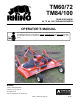 OPERATION RHINO TM60/TM72/TM84 and TM100 FINISHING MOWER OPERATION INSTRUCTIONS OPERATION Rhino TM60/72/84/and TM100 finishing mowers are manufactured with quality material by skilled workers. These mowers are designed to cut grass, weeds, small brush and other vegetative material up to 1” diameter in areas such as pastures, industrial areas, and roadsides. All shields, guards, deflectors, and chains equipped on the unit must be maintained on the mower in good operational condition.
