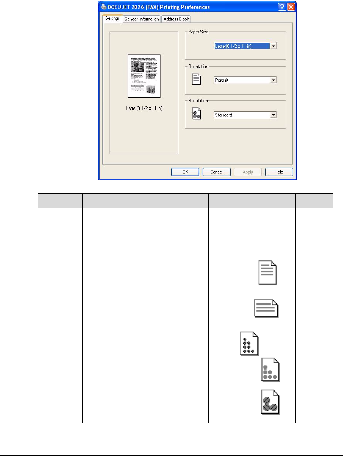 The “Settings” tab contains settings for Paper Size, Orientation, and Resolu-