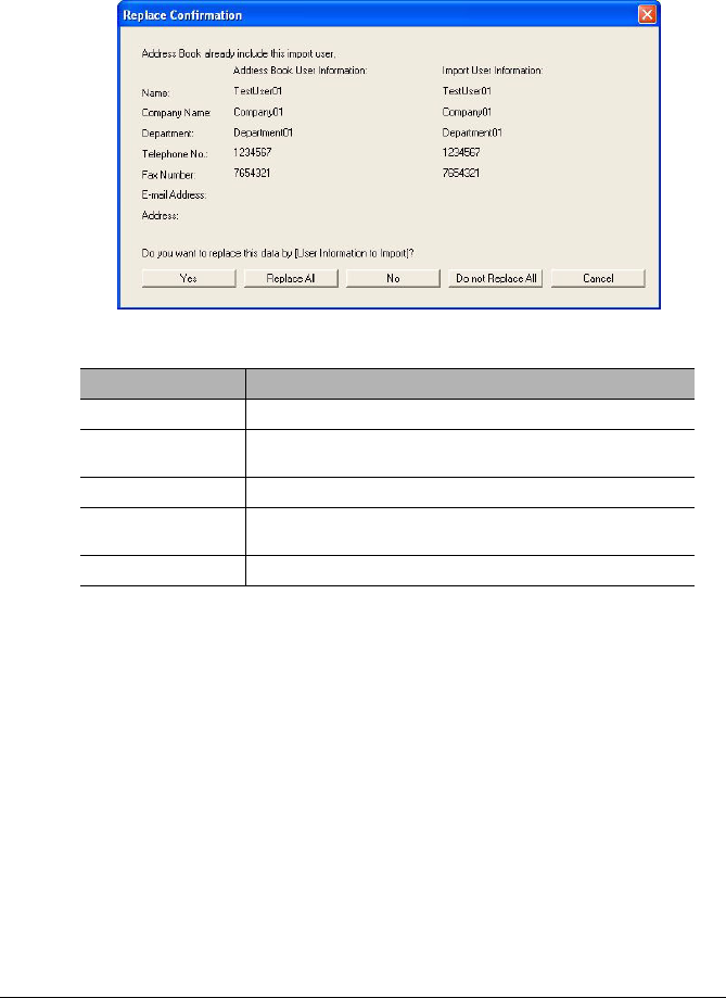 Do not Replace All Do not replace all address book user’s data when user’s name is
