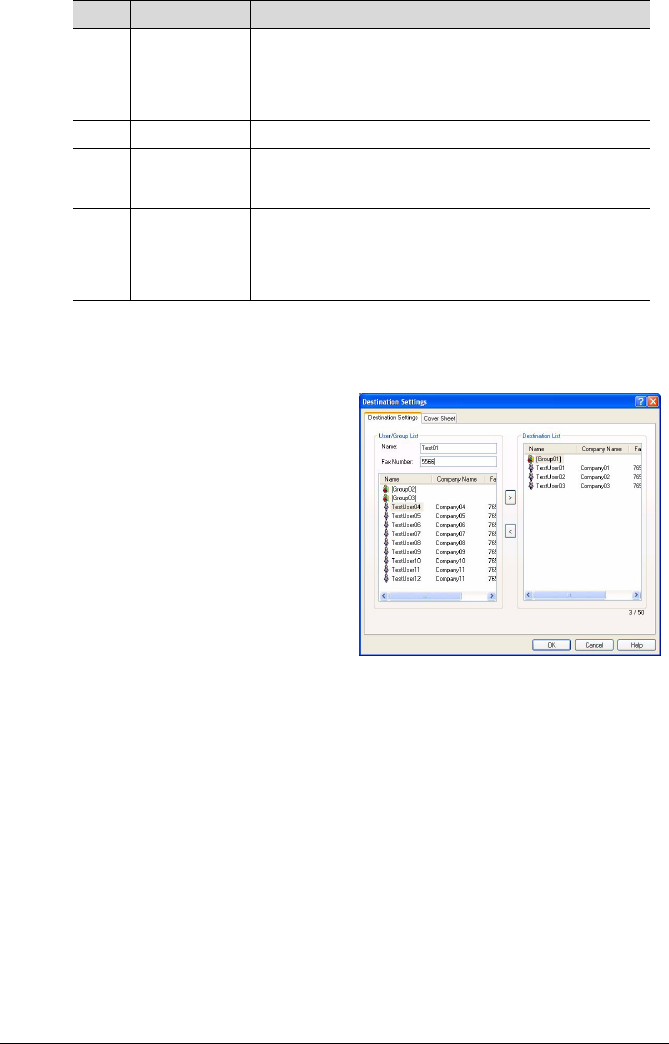 5 Add Button [ > ] Add an available group / user / one-time user to destination list.