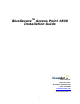 BlueSecure™ Access Point 1800 Installation Guide Copyright Notice Copyright © 2010 Bluesocket, Inc. All rights reserved. No part of this document may be reproduced in any form or by any means, electronic or manual, including photocopying without the written permission of Bluesocket, Inc. The products described in this document may be protected by one or more U.S. patents, foreign patents, or pending patents.