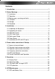 Contents 1. Introduction ......................................................................................... 1 2. Safety Warnings .................................................................................. 4 2.1 Installation ...................................................................................... 4 2.2 Operation........................................................................................ 5 2.3 Maintenance, servicing and faults ...........................................