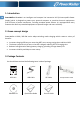 4. Усталёўка і пачатковы пуск BY Праверце блок перад усталёўкай. Праверце, што няма пашкоджанняў. I: Месцаванне і ўмовы захоўвання Усталюйце блок у абароненым памяшканні з дастатковай вентыляцыяй і без празмернага пылу. Адлегласць ад іншых прылад павінна быць мінімум 20 гл для выключэння перашкод. Не ўключайце ББС, калі тэмпература перавышае 40 C, а адносная вільготнасць 90 %. II: Падлучэнне да сеткі і зарад Устаўце відэлец у разетку сілкавання зменнага току.