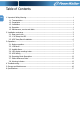 Table of Contents EN 1. Important Safety Warning ............................................................................................... 1 1-1. Transportation ....................................................................................................... 1 1-2. Preparation ........................................................................................................... 1 1-3. Installation .............................................................................................