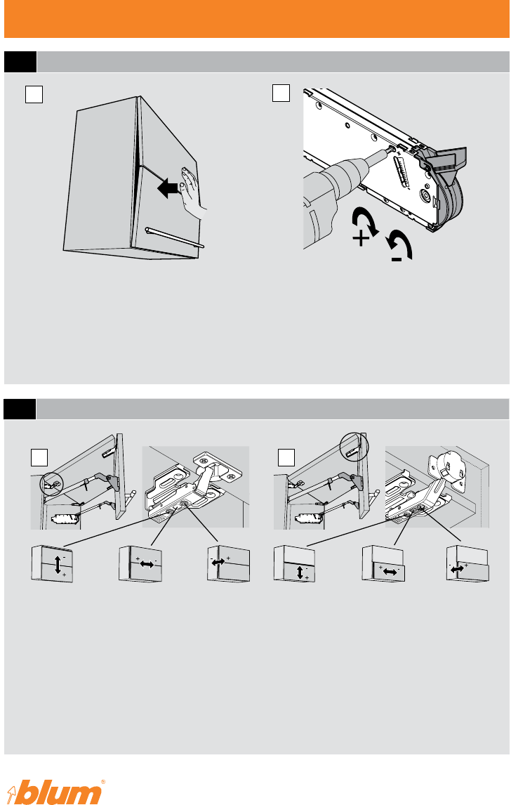 Close and flush doors to cabinet. Open and close door to test closing force. Use a screw gun and a #2x2 POZI