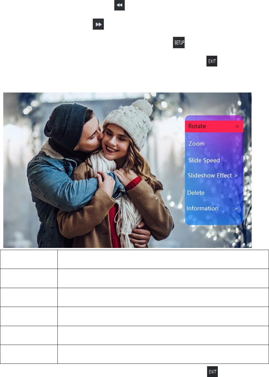 to suspend the slide playing (if it is suspended, press this button to restore the