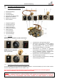 Gebruiksaanwijzing 2.2. Toestellen met Minisit kraanblok 2.2.1. Beschrijving van het kraanblok 1. 2. 3. 4. 5. 6. 7. Waakvlamdrukknop Dovingsknop Thermostaatknop Schroeven voor beschermkap Regelschroef waakvlam Regelschroef kleinstand Piëzo-ontsteker 1. 2. 3. 4. 5. 6. 7. 8. 9. Hoogspanningskabel Dichtingringen (kurk) Gastoevoer brander Debiet instelschroef Gastoevoer waakvlam Elektromagneet Drukmeetnippels Gasaansluiting 3/8” Thermostaatvoeler 2.2.2.