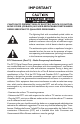 IMPORTANT CAUTION:TO PREVENT RISK OF ELECTRIC SHOCK, DO NOT REMOVE COVER (OR BACK). NO USER-SERVICEABLE PARTS INSIDE. REFER SERVICING TO QUALIFIED PERSONNEL. The lightning flash with arrowhead symbol, within an equilateral triangle, is intended to alert the user to the presence of uninsulated “dangerous voltage” within the product’s enclosure that may be of sufficient magnitude to constitute a risk of electric shock to persons.