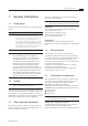 EN Table of Contents 1 1.1 1.2 1.3 1.4 1.5 General information Target group......................................................... 5 Validity................................................................. 5 Other applicable documents................................ 5 Data protection.................................................... 5 Presentation of information.................................. 5 5 2 Safety 7 2.1 2.2 2.3 2.4 2.5 2.6 General safety instructions.............................