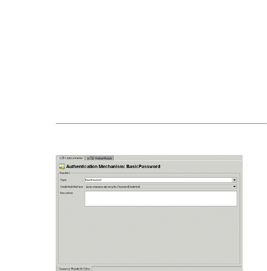 Connector modules have an Authentication Mechanism node in the structure pane.