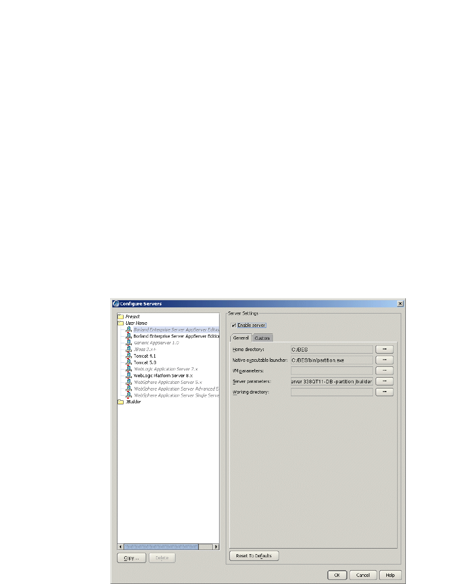 parameter settings for the server. If JBuilder’s default settings are not appropriate,