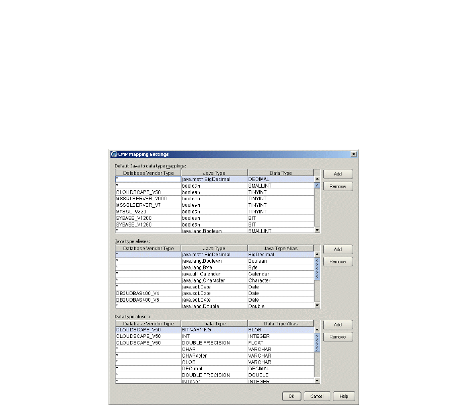 Default Java To Data Type Mappings: This list is used if JBuilder is unable to
