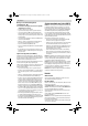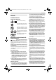 OBJ_BUCH-3472-001.book Page 107 Thursday, December 21, 2017 4:11 PM Svenska | 107 Använd inte laddaren på lättantändligt underlag (t. ex. papper, textilier mm) resp. i brännbar omgivning. Vid laddningen värms laddaren upp vilket kan medföra brandrisk. Täck inte över laddarens ventilationsöppningar. Laddaren kan i annat fall överhettas och fungerar då inte längre korrekt. För förbättrad elektrisk säkerhet rekommenderas användning av en jordfelsbrytare med en max. utlösningsström på 30 mA.