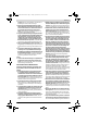 OBJ_DOKU-28019-001.fm Page 25 Friday, September 23, 2011 8:28 AM Français | 25 f Soyez particulièrement prudent lorsque vous faites une « coupe en retrait » dans des parois existantes ou dans d’autres zones sans visibilité. La meule saillante peut couper des tuyaux de gaz ou d’eau, des câblages électriques ou des objets, ce qui peut entraîner des rebonds. Mises en garde de sécurité spécifiques aux opérations de ponçage f Ne pas utiliser de papier abrasif trop surdimensionné pour les disques de ponçage.
