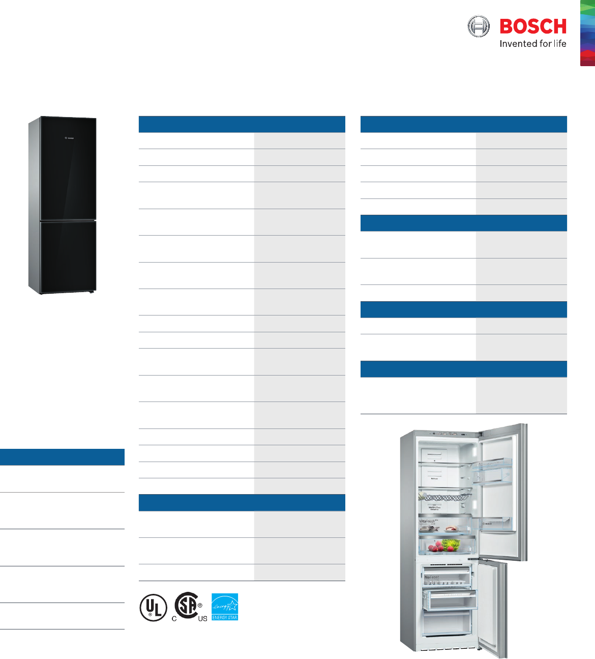Notes: All height, width and depth dimensions are shown in inches. BSH reserves the absolute and unrestricted right to change product materials and specifications, at any time, without