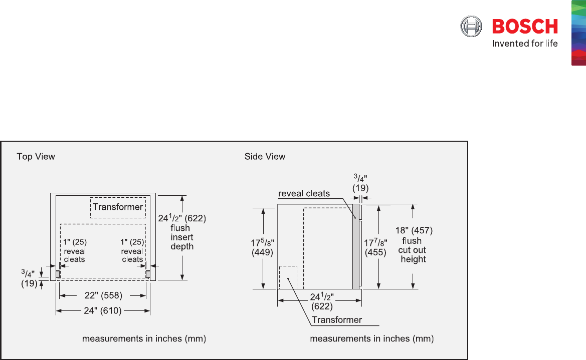 Notes: All height, width and depth dimensions are shown in inches. BSH reserves the absolute and unrestricted right to change product materials and specifications, at any time, without