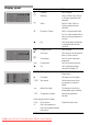 Display panel Display Notes ! N Prewash On if selected Washing Not on if Rinse, Spin, Empty or Drying programme was selected O Rinse Not on if Spin, Empty or Drying programme was selected Í Final spin / Empty Not on if a programme with the "$" setting (without final spin) or drying programme is running ˆ Dry On if the drying programmes or drying time/mode was selected @ } Childproof lock On if selected Door open On if the door can be opened during "Pause" period * Overdosage On if to