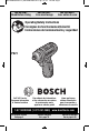 BM 2610022007 04-12_BM 2610022007 04-12.qxp 4/17/12 1:26 PM Page 15 Maintenance Service NO USER SERVICEABLE ! WARNING PARTS INSIDE. Preventive maintenance performed by unauthorized personnel may result in misplacing of internal wires and components which could cause serious hazard. We recommend that all tool service be performed by a Bosch Factory Service Center or Authorized Bosch Service Station. SERVICE MEN: Disconnect tool and/or charger from power source before servicing.