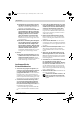OBJ_BUCH-572-003.book Page 24 Wednesday, March 5, 2008 9:32 AM 24 | Français Aspiration de poussières/de copeaux f Les poussières de matériaux tels que peintures contenant du plomb, certains bois, minéraux ou métaux, peuvent être nuisibles à la santé. Toucher ou aspirer les poussières peut entraîner des réactions allergiques et/ou des maladies respiratoires auprès de l’utilisateur ou de personnes se trouvant à proximité.
