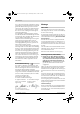 OBJ_BUCH-572-003.book Page 72 Wednesday, March 5, 2008 9:32 AM 72 | Svenska Sekundär-/primärbatterier: Ni-Cd: Nickel-kadmium Obs! Dessa batterier innehåller kadmium, en höggiftig tungmetall. Ni-MH: Nickel-metallhydrid Förbrukade batterier får inte slängas i hushållsavfall och inte heller i eld eller vatten. Batterierna ska samlas för återvinning eller omhändertas på miljövänligt sätt. Endast för EU-länder: Defekta eller förbrukade batterier måste enligt direktivet 91/157/EEG omhändertas för återvinning.