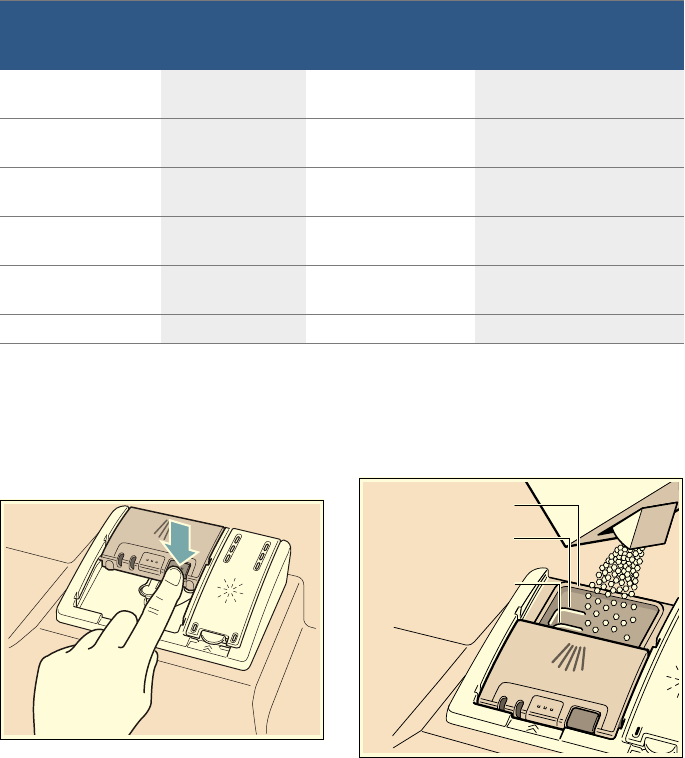 - 1. Open the rinse aid dispenser 9* by pressing on the latch of the lid and pull it open.