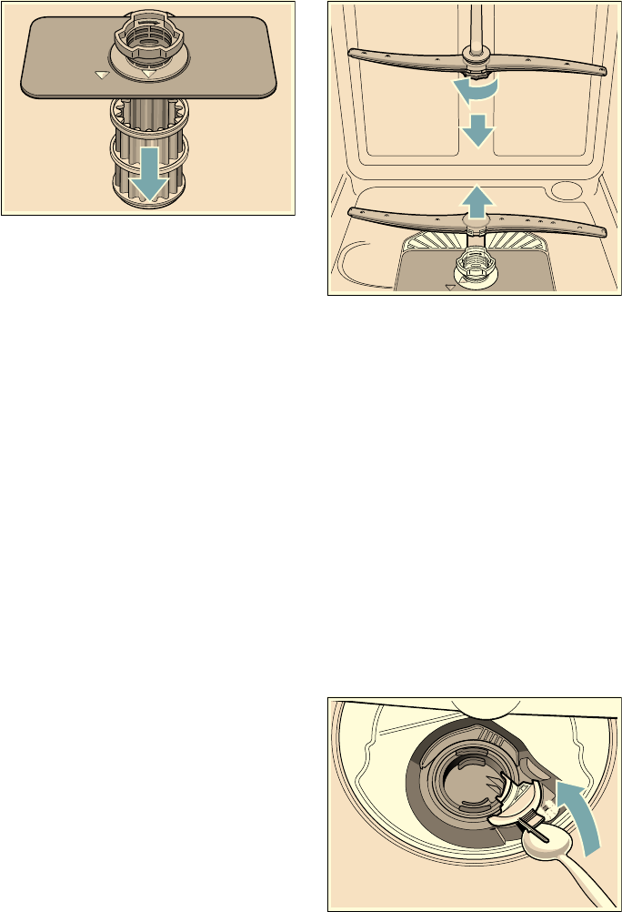 - 3. Remontez le système de filtration dans l'ordre inverse et fixez le filtre à gros éléments en le vissant jusqu'à ce que les flèches de marquage soient alignées.