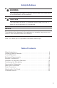 Safety Definitions ! WARNING This indicates that death or serious injuries may occur as a result of non-observance of this warning. ! CAUTION This indicates that minor or moderate injuries may occur as a result of non-observance of this warning. NOTICE This indicates that damage to the appliance or property may occur as a result of non-compliance with this advisory. Note: This alerts you to important information and/or tips. Table of Contents Safety Instructions. . . . . . . . . . . . . . . . . . . . .