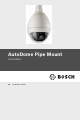 en | Installing the Pipe Mount AutoDome Pipe Mount 5. Choose the appropriate VG5 AutoDome model (indoor or 6. Purchase the appropriate mounting hardware to use, outdoor) for the environment in which it will be used. depending on the location of the AutoDome and the application. CAUTION! Select a rigid mounting location to prevent excessive vibration to the AutoDome camera. F.01U.251.410 | 1.0 | 2011.08 Installation Guide Bosch Security Systems, Inc.
