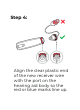 Step 4: Align the clear plastic end of the new receiver wire with the port on the hearing aid body so the red or blue marks line up.