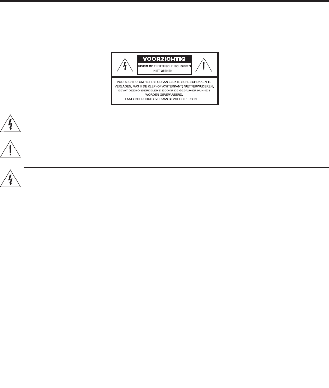 • Stel dit apparaat niet bloot aan druipende of spattende vloeistoffen en plaats geen voorwerpen gevuld