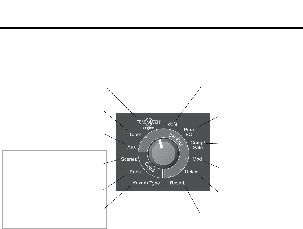 The T1 rotary selector provides access to the functions that shape the sound of the ToneMatch