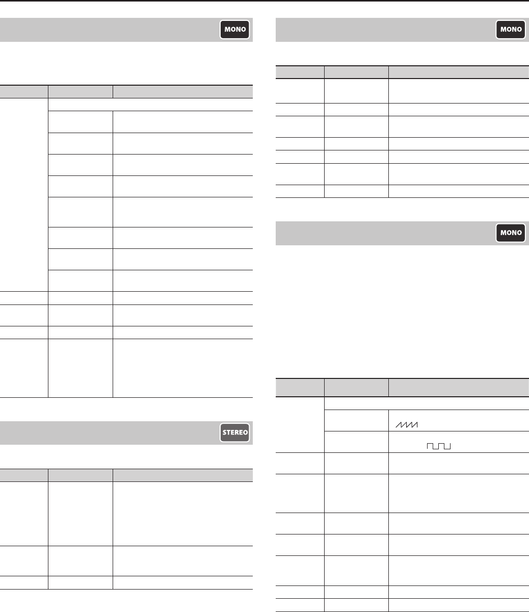 EFFECT LEVEL 0–100 Adjusts the volume of the eect sound.