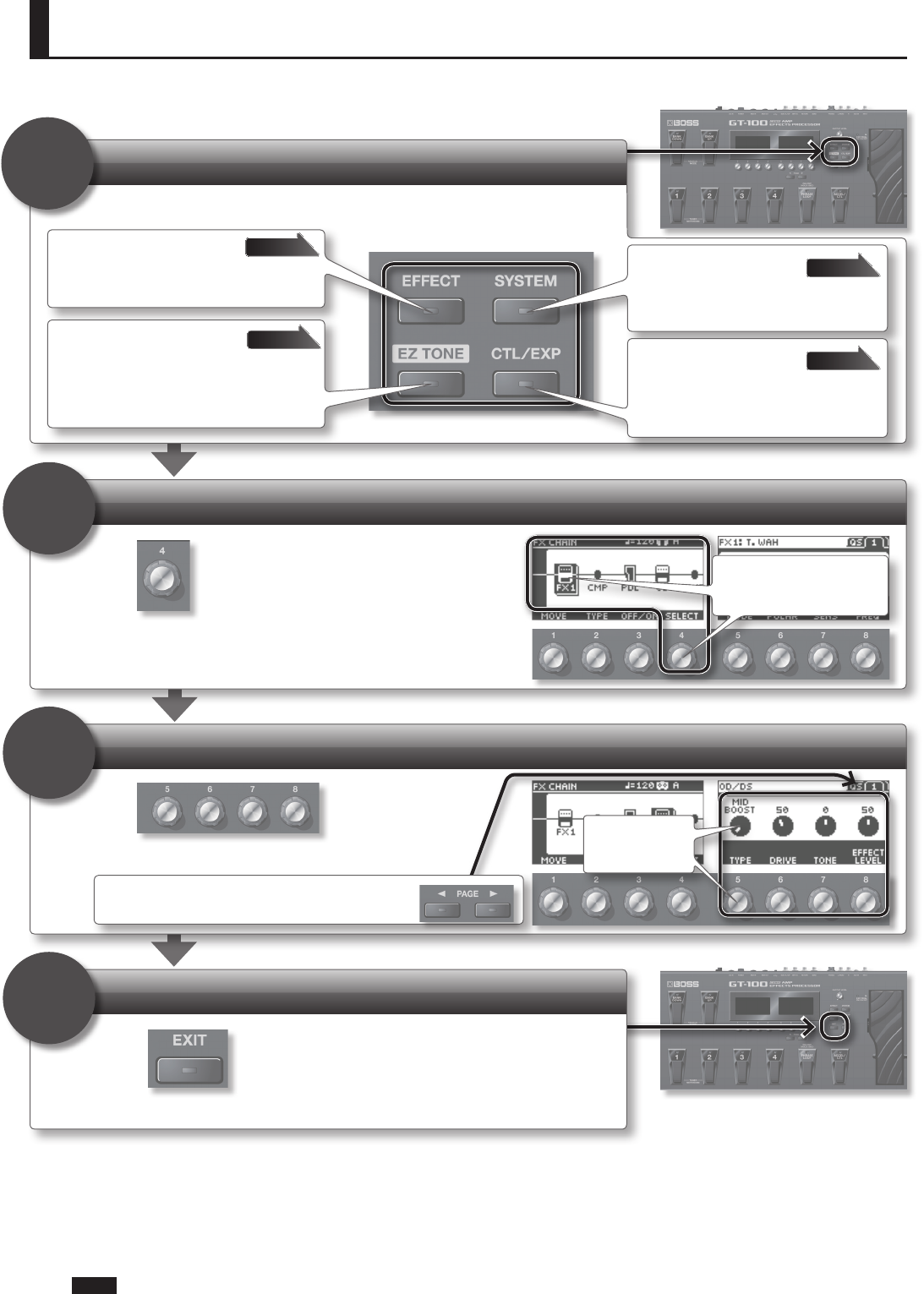 Editing on the GT-100 is extremely simple; the procedure is always the same..