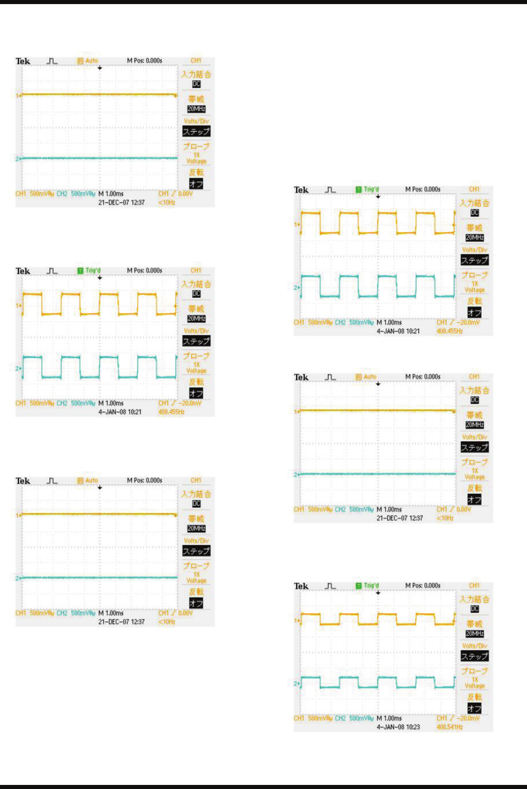Set the oscilloscope to 500 mV/DIV, 1 ms/DIV, and coupling: DC.