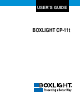 LIMITED WARRANTY BOXLIGHT CORPORATION (“BOXLIGHT”) warrants that each Boxlight CP-11t (“the Product”) sold hereunder will conform to and function in accordance with the written specifications of BOXLIGHT. Said limited warranty shall apply only to the first person or entity that purchases the Product for personal or business use and not for the purpose of distribution resale. Said warranty shall continue for a period of two (2) years from the date of such purchase.