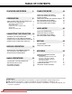 TABLE OF CONTENTS FEATURES AND DESIGN 5 PREPARATION 6 NAME OF EACH PART OF THE PROJECTOR SETTING-UP THE PROJECTOR 6 7 POSITIONING THE PROJECTOR ADJUSTABLE FEET CONNECTING THE AC POWER CORD VENTILATION MOVING THE PROJECTOR 8 8 8 8 9 CONNECTING THE PROJECTOR 10 TERMINALS OF THE PROJECTOR CONNECTING TO THE VIDEO EQUIPMENT CONNECTING TO THE IBM-COMPATIBLE COMPUTER CONNECTING TO THE MACINTOSH COMPUTER 10 11 12 14 BEFORE OPERATION 16 OPERATION OF THE REMOTE CONTROL TOP CONTROLS AND INDICATORS OPERAT