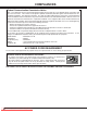 APPENDIX TECHNICAL SPECIFICATIONS Projector Type Dimensions (W x H x D) Net Weight LCD Panel System Panel Resolution Number of Pixels Color System High Definition TV Signal Scanning Frequency Projection Image size (Diagonal) Horizontal Resolution Projection Lens Throw Distance Projection Lamp Video Input Jacks Audio Input Jacks Computer Input Terminal Monitor Out Terminal Computer Audio Input Jack Control Port Connector USB Connector Audio Output Jacks Internal Audio Amp Built-in Speakers Feet Adjustment V