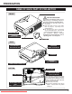 PREPARATION NAME OF EACH PART OF PROJECTOR FRONT EXHAUST VENTS HOT AIR EXHAUSTED ! Air blown from Exhaust Vents is hot. When using or installing projector, following precautions should be taken. ● Do not put any flammable object near these vents. ● Keep front grills at least 3’(1m) away from any object, especially heatsensitive objects. ● Do not touch this area, especially screws and metallic parts. This area will become hot while a projector is used.