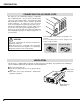 PREPARATION MOVING THE PROJECTOR Use the Carry Handle when moving the Projector. When moving the projector, replace the Lens Cover and retract the Adjustable Feet to prevent damage to the lens and cabinet. When this projector is not in use for an extended period, replace the Lens Cover, retract the Adjustable Feet and apply the Dust Cove0r supplied with this projector. CAUTION WHEN CARRYING OR TRANSPORTING THE PROJECTOR ● Do not drop or bump the projector, otherwise damages or malfunctions may result.