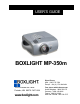 USERS GUIDE BOXLIGHT MP-350m Direct Phone: USA: (360) 779-7901 Europe: +44 (0) 1732-840-404 19332 Powder Hill Place Poulsbo, WA 98370-7407 USA www.boxlight.