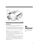 U s i n g t h e P r o j e c t o r Lamp hours used Indicates how many hours the current lamp has been in use. The counter starts at zero hours and counts each hour the lamp is in use. When the counter reaches 3000 hours, the lamp monitor light turns on. For optimum results, the lamp should be replaced at this time. See “Replacing the Projection Lamp” on page 37 for details. Computer resolution Shows your computer’s resolution setting.