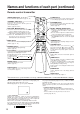 Names and functions of each part (continued) Remote control transmitter VIDEO, RGB button LASER button Press to switch the input. (Refer to page 13, 19.) STANDBY / ON button VIDEO RGB LASER STANDBY/ON POSITION Used to turn the power on and off. Press for 1 sec. or more to turn the power off (enter standby status). (Refer to pages13 and 14.) button * POSITION Press Position, then use the mouse Disk Pad to adjust the image position (RGB mode only). (Refer to page 16.
