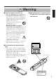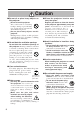 [Safety Precaution] Warning ■ If a problem should occur. or a strange odor arises, continued • Ifusesmoke could result in fire or electrical shock. In • • such case, immediately turn off the power switch and then disconnect the power plug from the power outlet. After making sure that the smoke or odor has stopped, contact your dealer for repairs. Never attempt to make repairs yourself because this is dangerous.