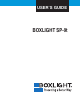 LIMITED WARRANTY BOXLIGHT CORPORATION (“BOXLIGHT”) warrants that each BOXLIGHT SP-9t (“the Product”) sold hereunder will conform to and function in accordance with the written specifications of BOXLIGHT. Said limited warranty shall apply only to the first person or entity that purchases the Product for personal or business use and not for the purpose of distribution resale. Said warranty shall continue for a period of two (2) years from the date of such purchase.