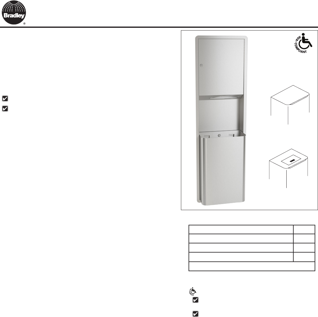 towels. Re mov able 12 gal. stainless steel waste re cep tacle. Reusable vinyl liner is optional.