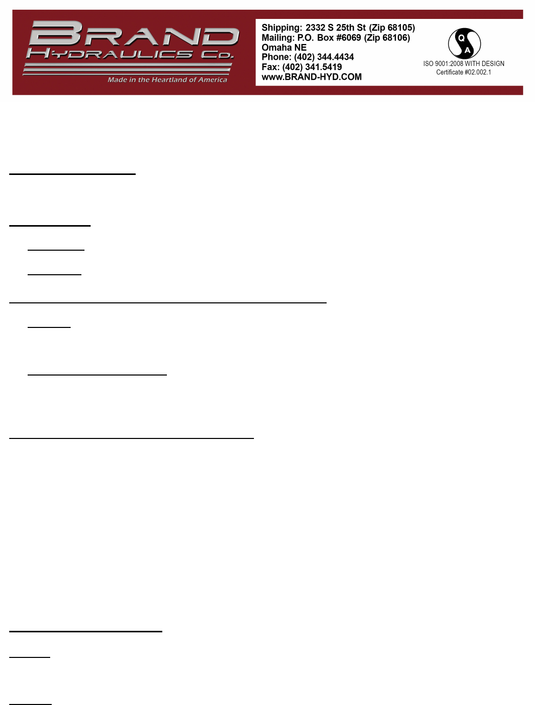 Relief Adjustment (FG52 valve) –Relief setting is factory preset to 1500 psi, unless otherwise noted within model code.