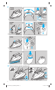 G Limpieza de la válvula anti-cal La plancha dispone de una válvula anti-cal que se encuentra en la parte inferior del botón de vapor (3). La válvula anti-cal debe ser descalcificada regularmente (por ejemplo cuando la producción de vapor sea insuficiente). Siga los siguientes pasos: 1) Desconecte la plancha y vacíe el depósito de agua. 11) – 13) Cuando la luz piloto se apague, presione el botón de super-vapor a presión 4 veces para drenar los conductos.