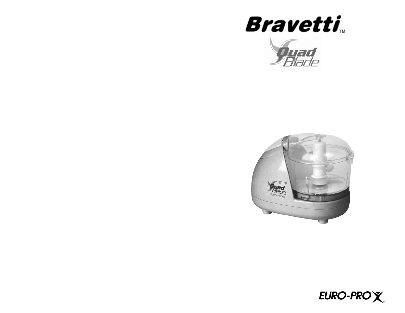 Mini Chopper OWNER'S MANUAL Model K4702H 120V, 60Hz., 250 Watts EURO-PRO 178 West Service Rd. Champlain, NY 12919 Tel.