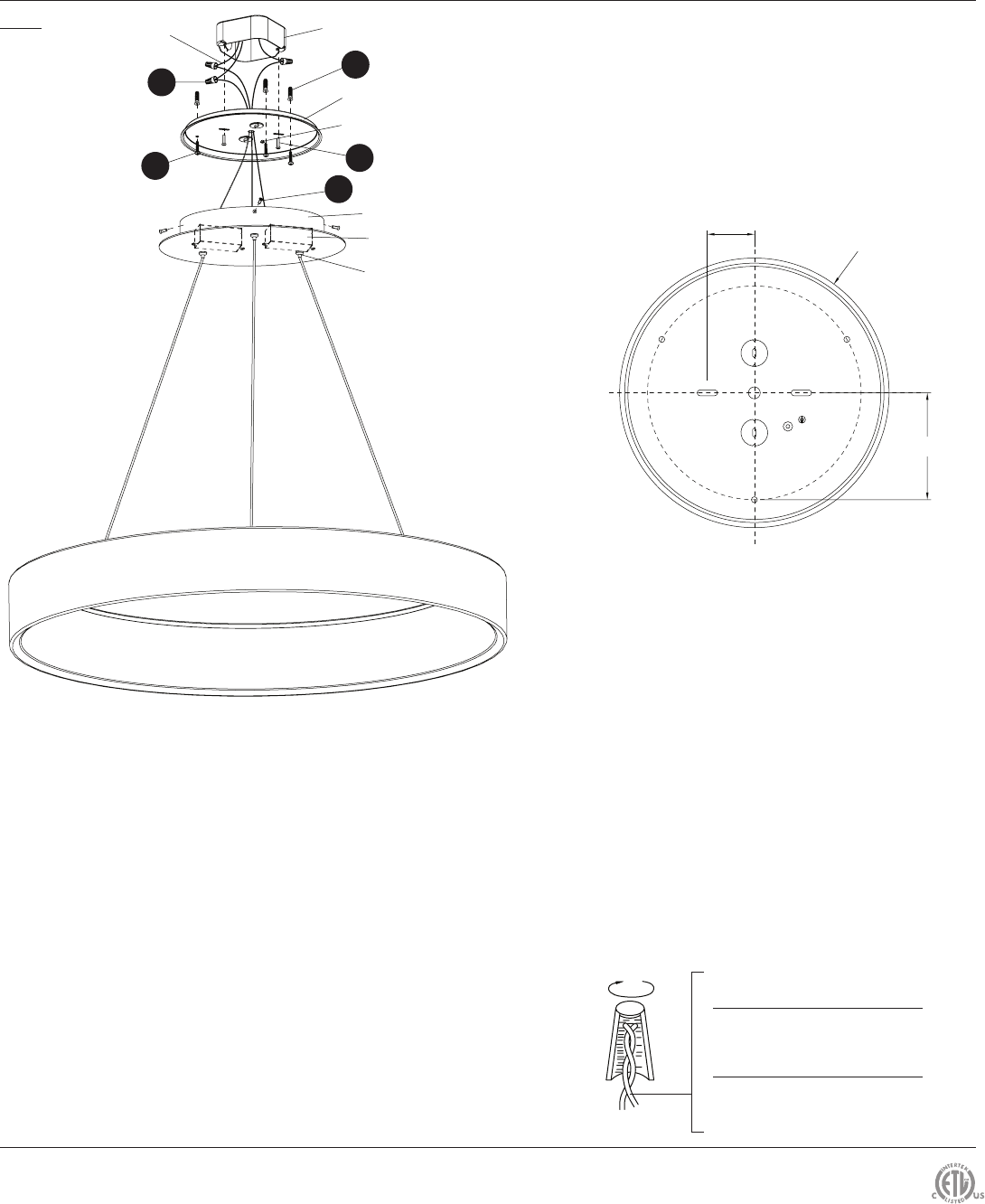 1. Shut o the power at the circuit breaker and remove existing xture, including the crossbar.